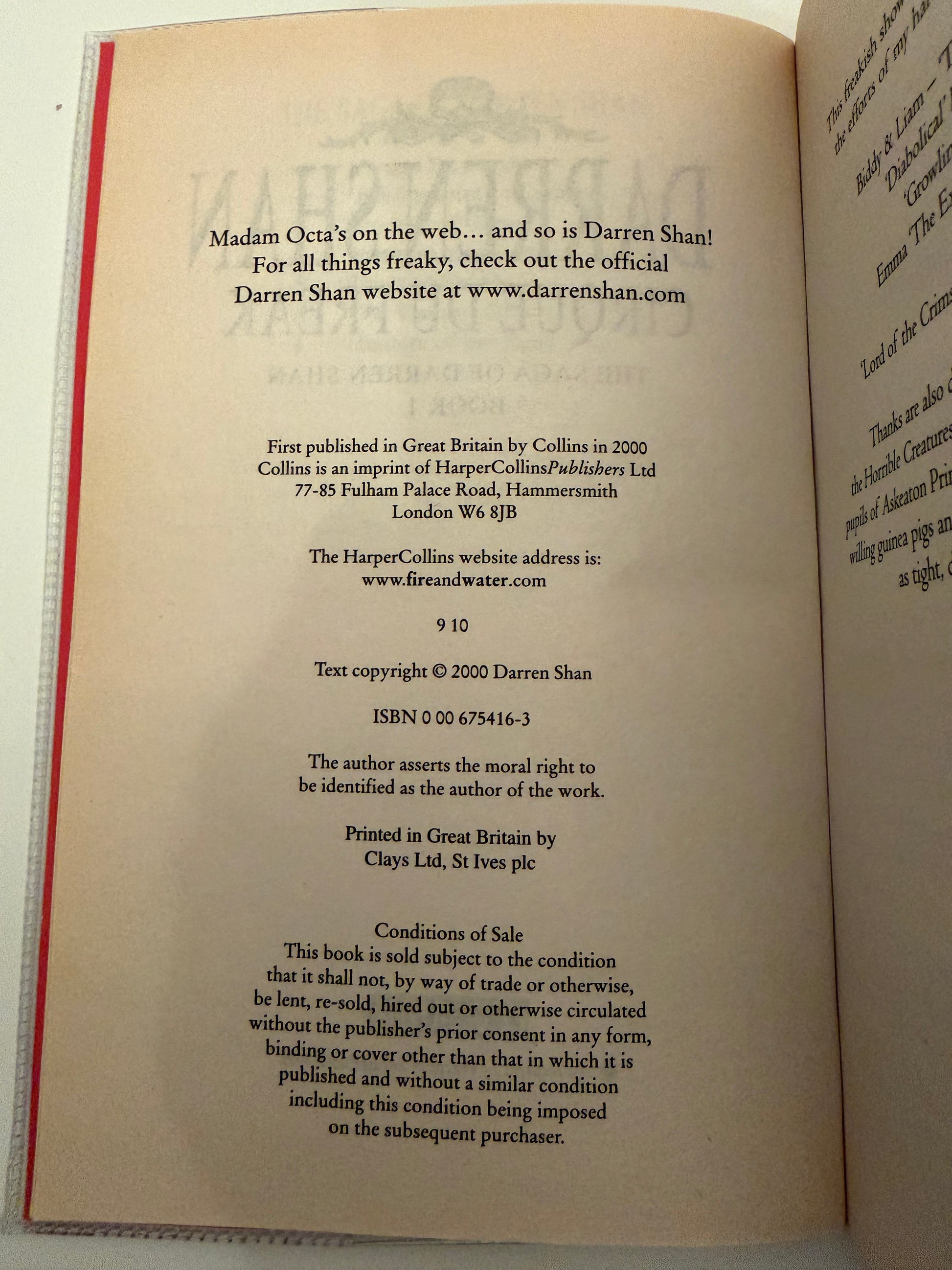 Cirque Du Freak by Darren Shan Book 1 in the Saga (paperback book)