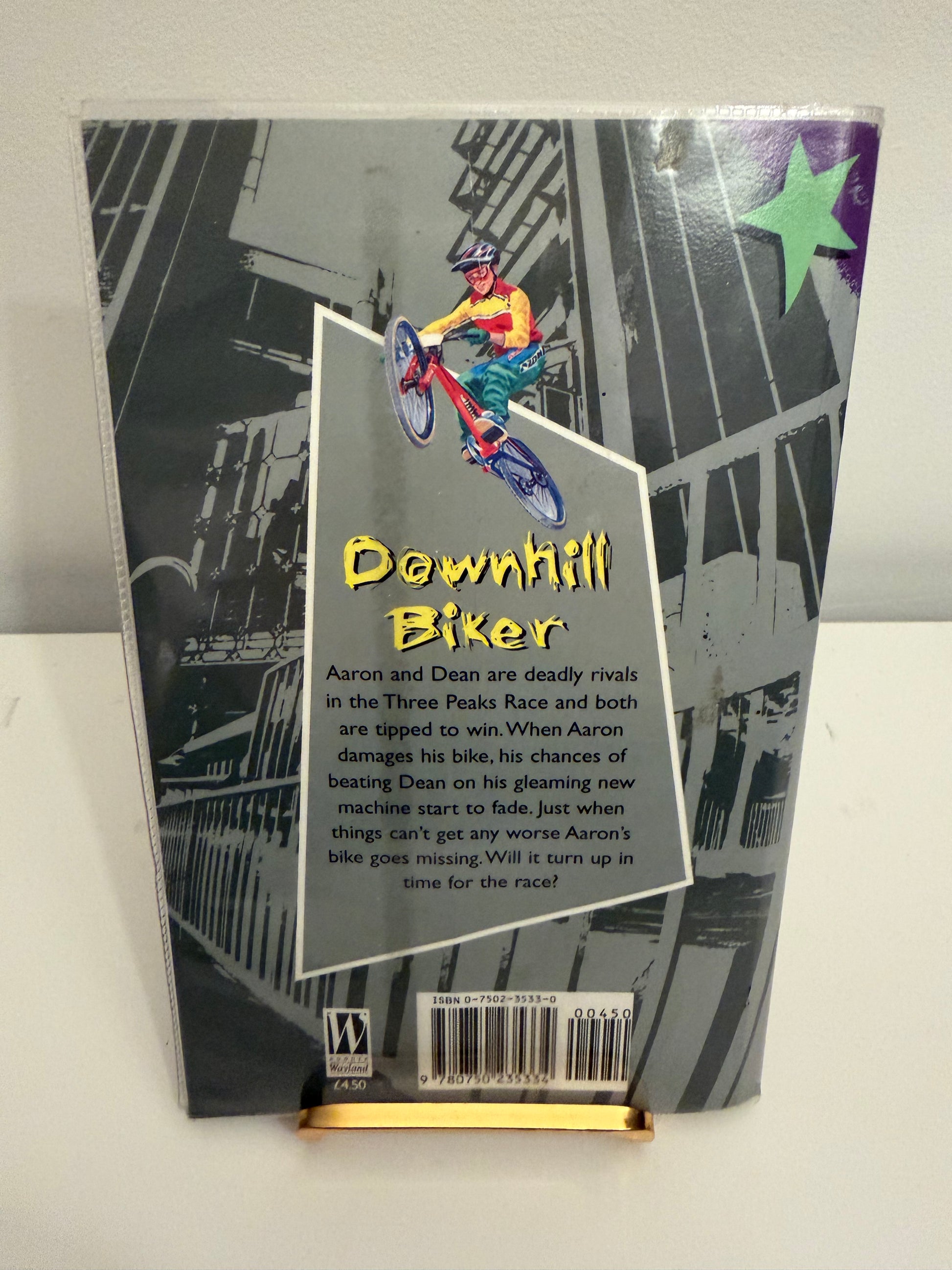 An action-oriented "Hi-Lo" collection, this is Downhill Biker by Michael Hardcastle. Hardcastle was a prolific British author renowned for his sports fiction, making this an ideal pick for readers who want high stakes combined with athletic competition.