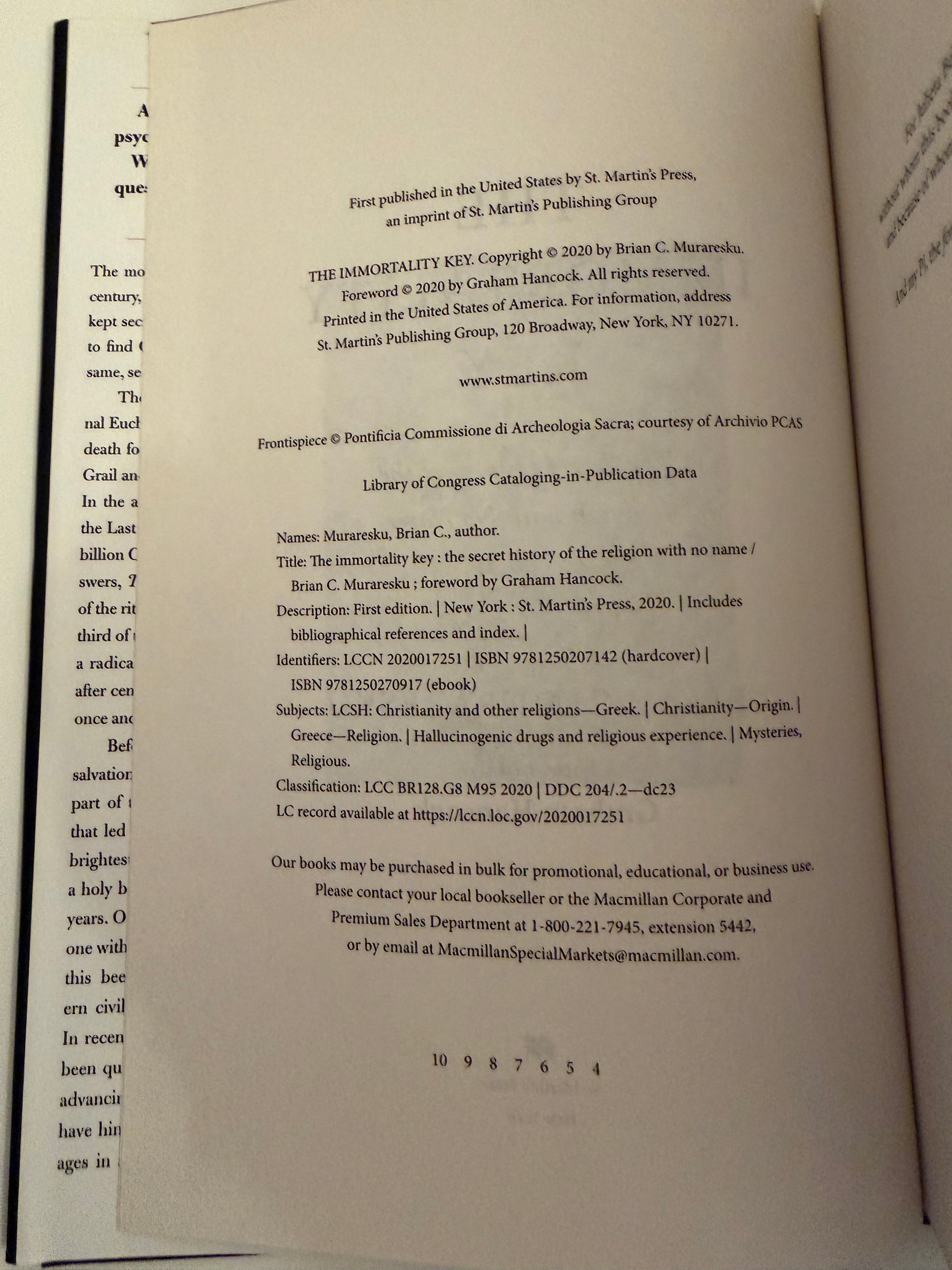 The Immortality Key, The Secret History of the Religion with No Name By Brian Moratesku (hardback book)