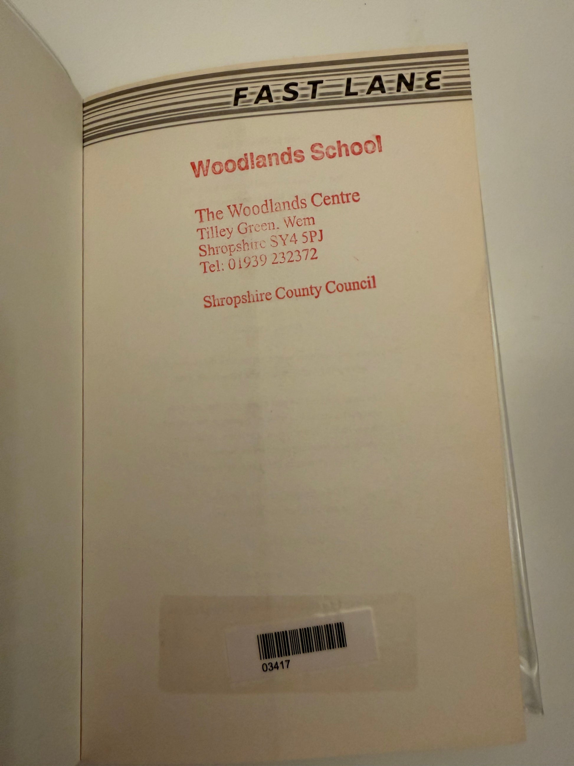 • Condition: Acceptable / Reading Copy. This copy has been through the educational system, featuring a handwritten "speed freaks" label over a previous library/quiz sticker on the bottom left. The cover itself is protected by a clear plastic laminate, which has kept the underlying art in good condition despite the heavy use.