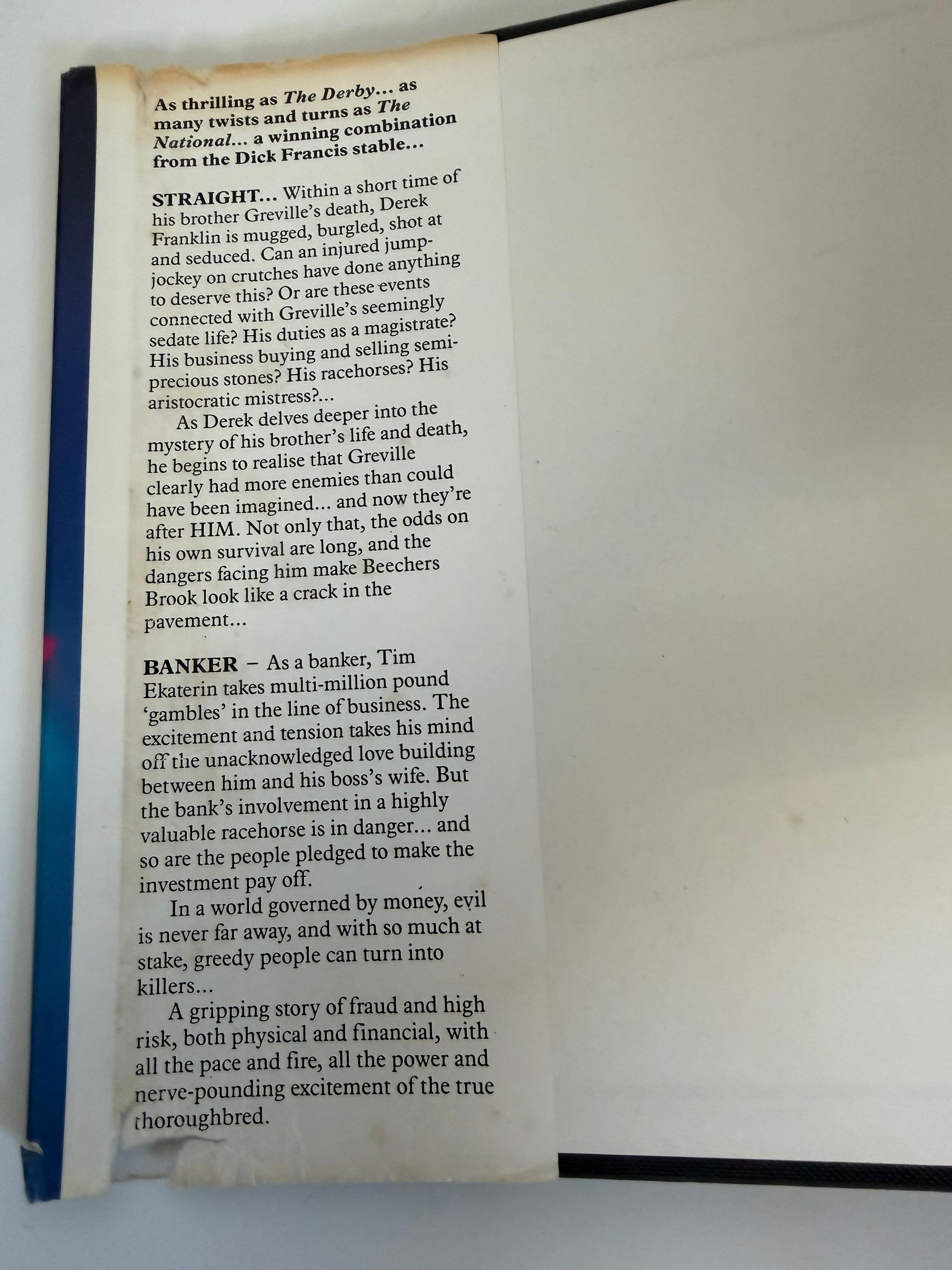 Straight Banker by Dick Francis (hardback book)
