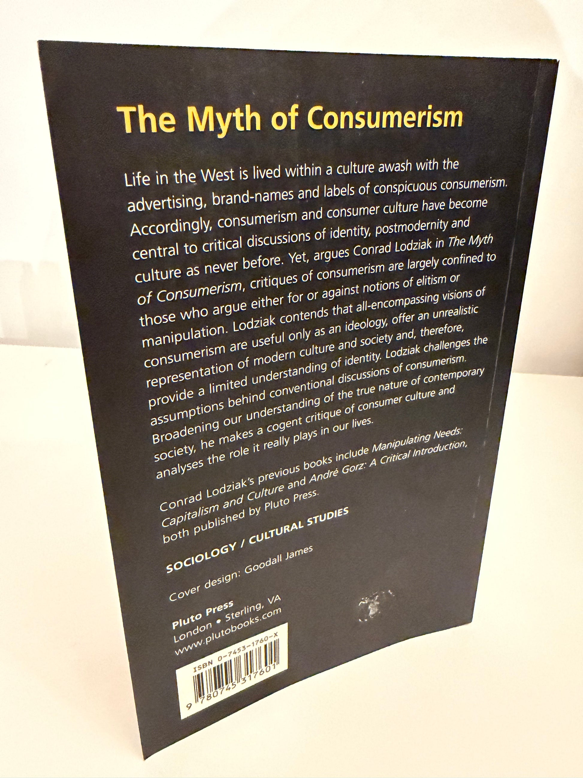 The Myth of Consumerism by Conrad Lodziak (paperback edition, published 2002 by Pluto Press) is a critical sociological and cultural studies text that challenges dominant views of consumerism in Western society.